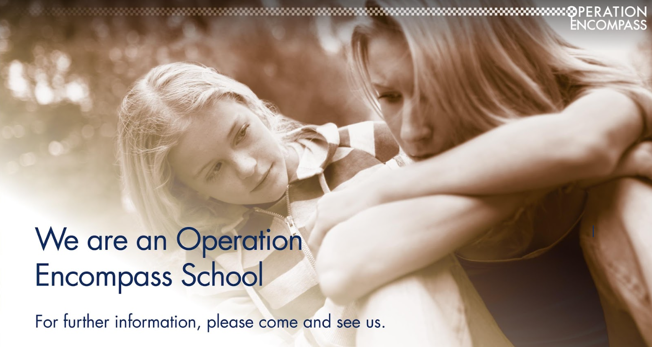 At our school, we are part of Operation Encompass. This is a joint partnership between police and education, designed to enable schools to offer immediate support to children experiencing domestic abuse.